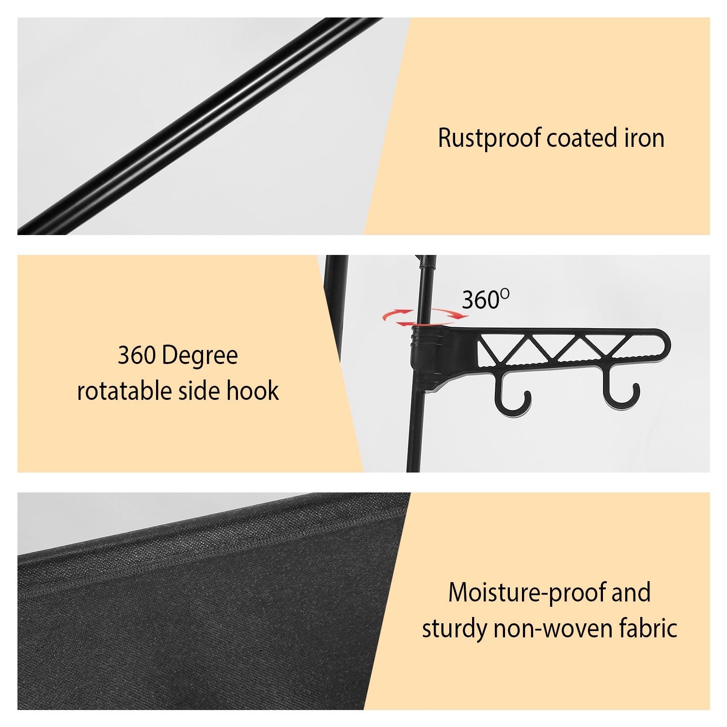 - Heavy Duty Iron Material: Made of coated iron. corrosion-resistant and rustproof. It can also act as an indoor clothesline pole in rainy days. The non-woven fabric is moisture-proof and easier to scrub.