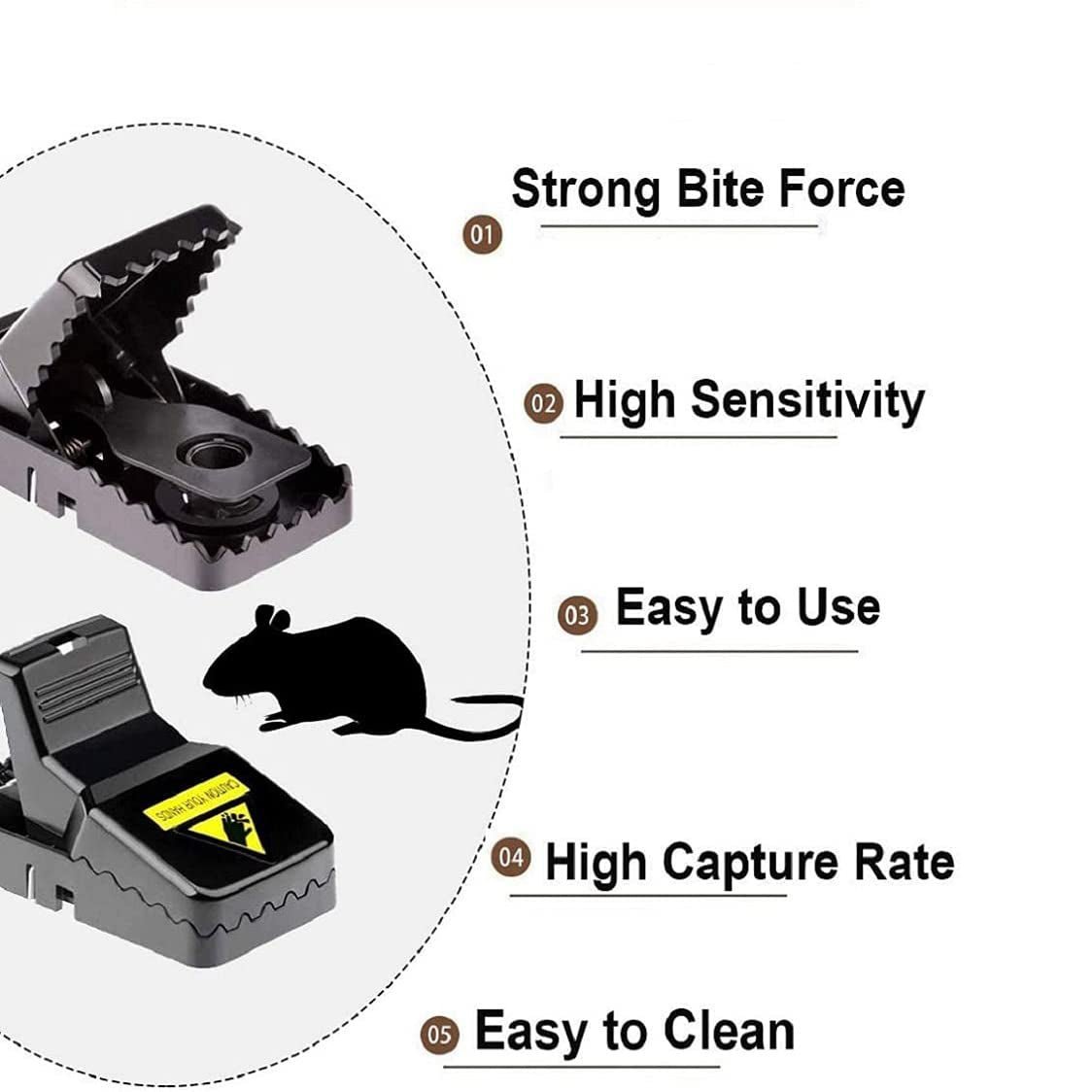 - Efficient and high sensitivity: These mouse traps are more effective and safe compared to traditional wood or metal traps. Only 0.025 lbs of weight can trigger the trap. With powerful stainless steel spring. these traps are suitable to catch small mice.