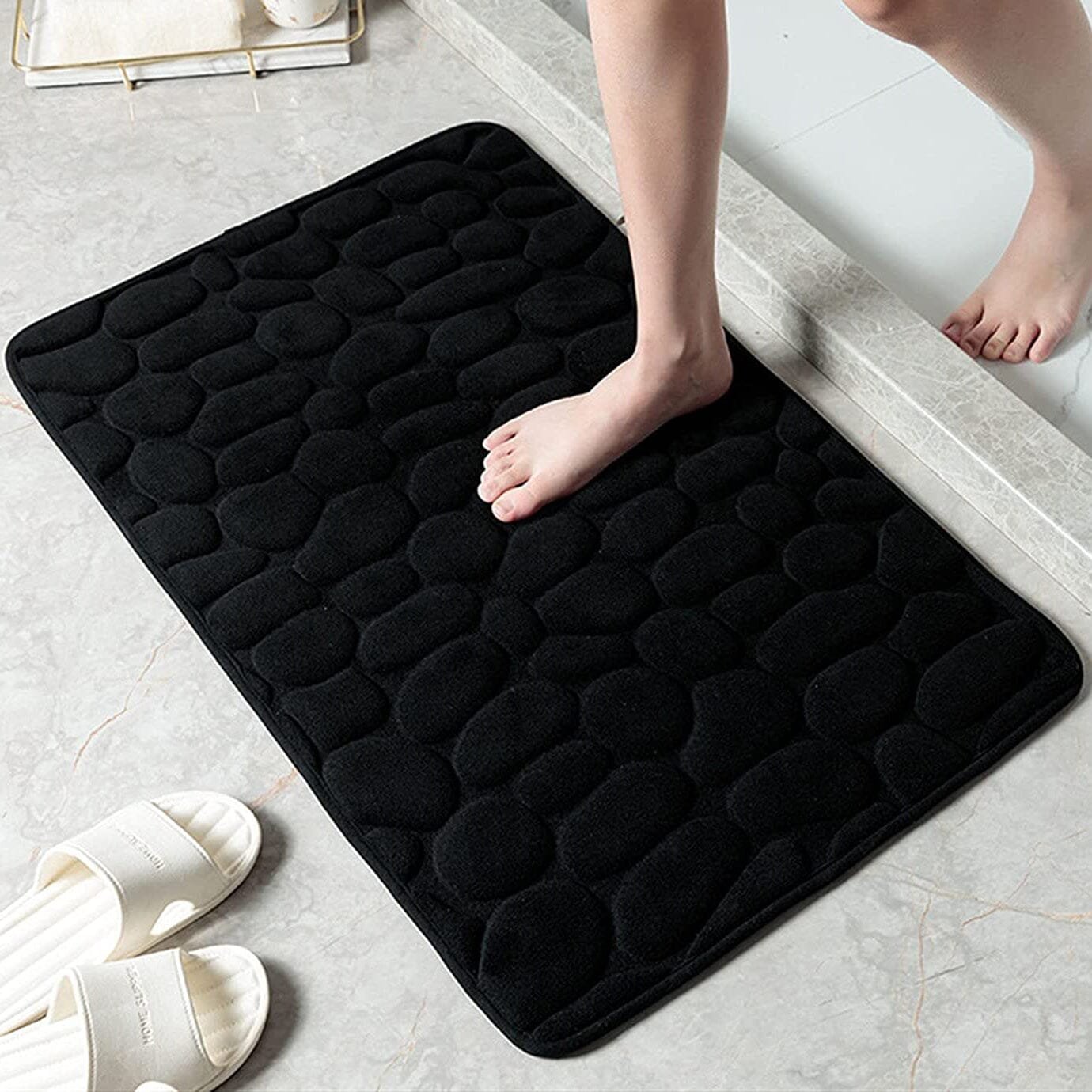 Soft Memory Foam Bath Mat Non Slip Cobblestone Embossing Bath Rug Absorbent Washable Bathroom Rug.