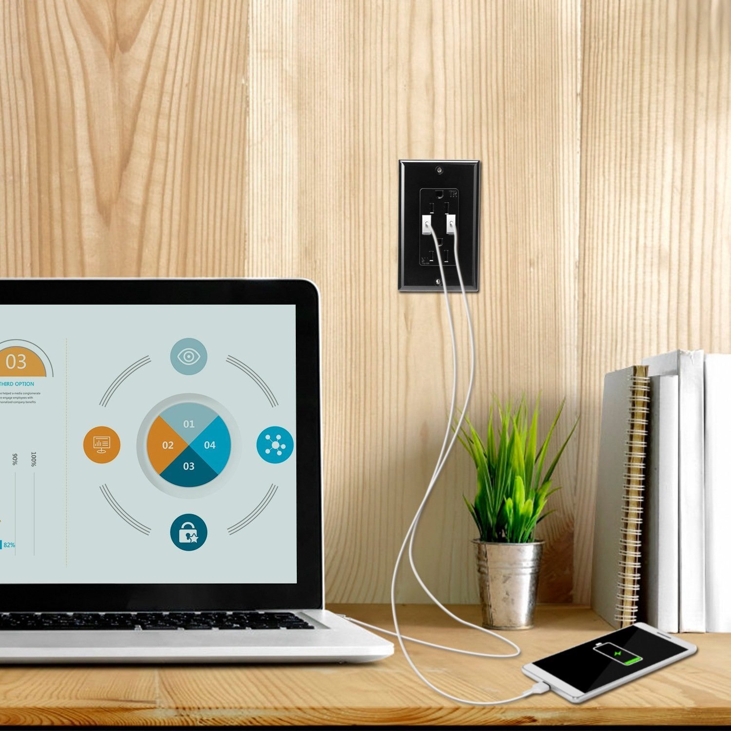- Easy to Install: Fix the USB wall outlet in wall with the coming two screws and then connect the three kinds of wires: Neutral. Hot and Ground separately in their specific locations.