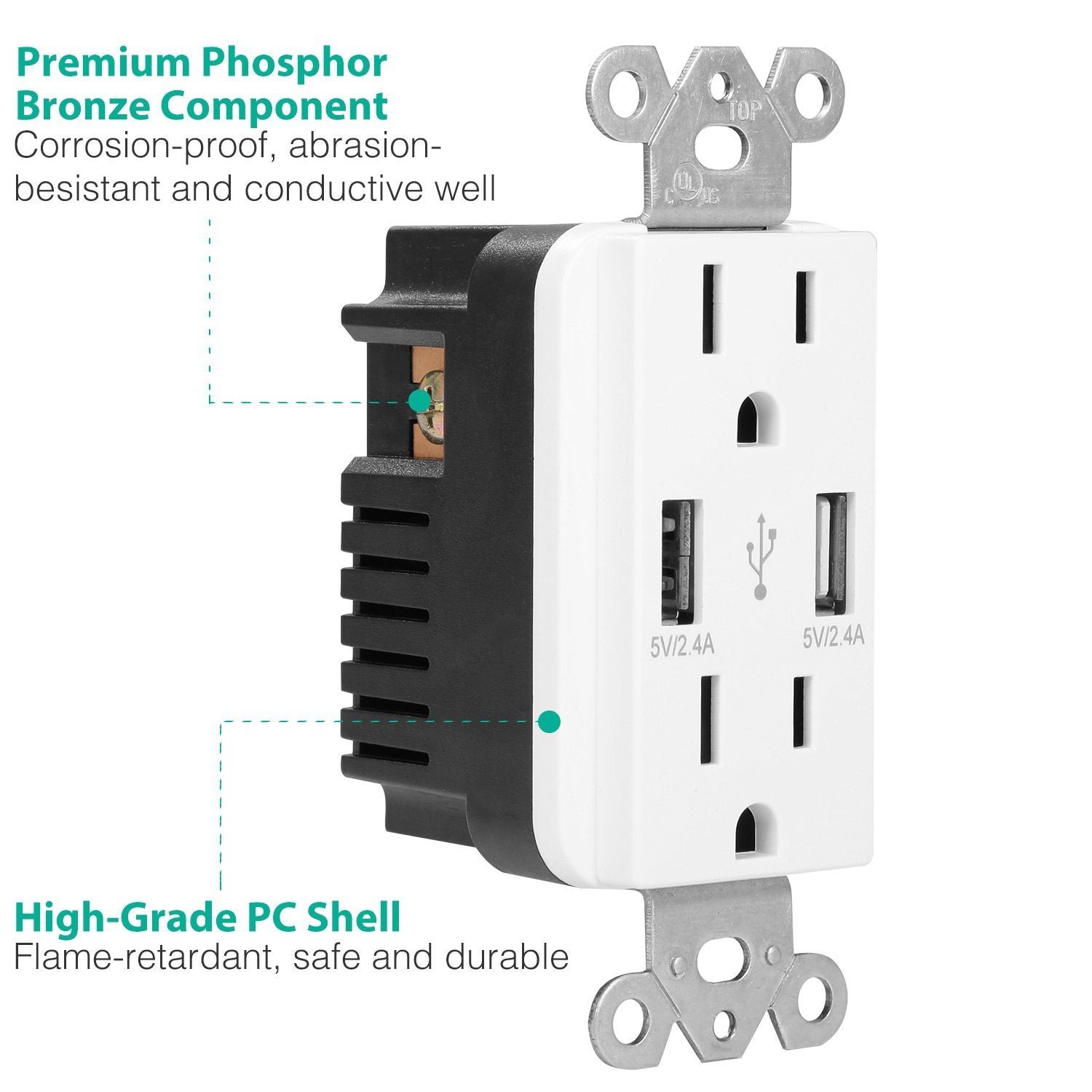 - Durable and Secure: Adopting flame-retardant PC and premium phosphor bronze material. our USB wall outlet supports overvoltage and overcurrent protection. durable and safe.