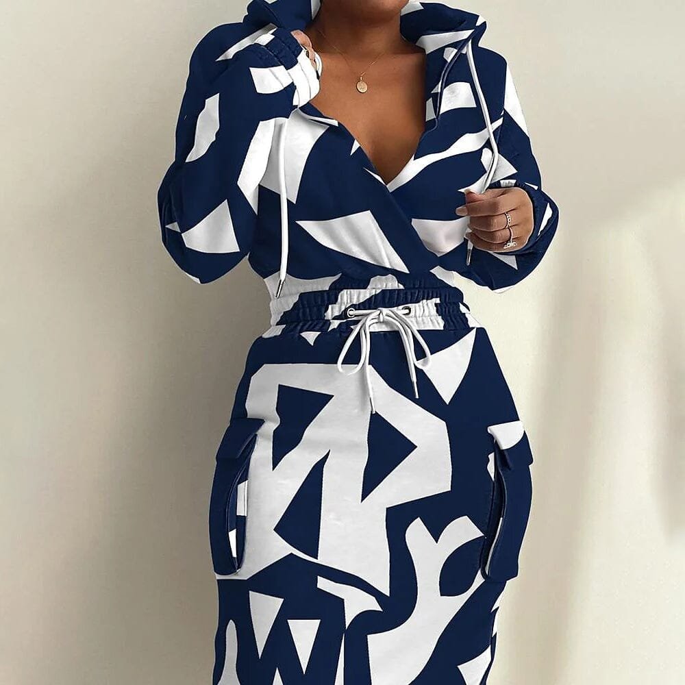 Women’s Casual Dress Sweatshirt Dress Sheath Dress Midi Dress Long Sleeve Print Pocket Winter Fall Autumn Deep V Casual Weekend Fall Dress.