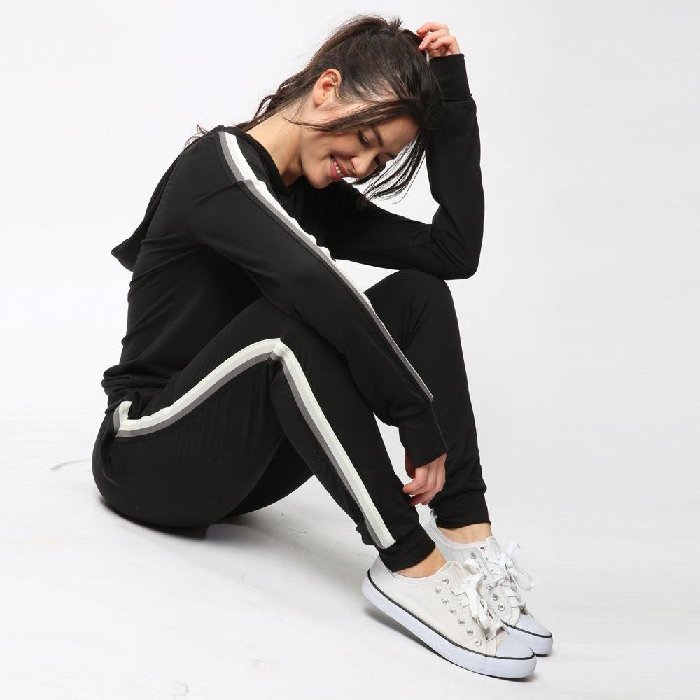 Meet your new everything pants. Become one with your couch. take on a caffeine buzz. shop until you drop. or work up a sweat sparkle in these super soft. lightweight joggers with sporty accent stripes and 4-way stretch.